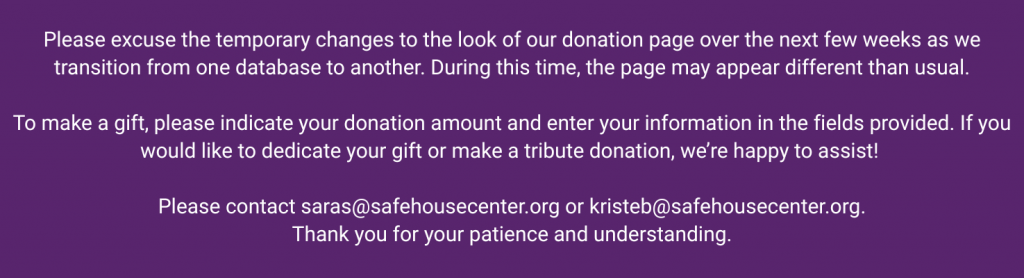 Email donations@safehousecenter.org if you have any questions.