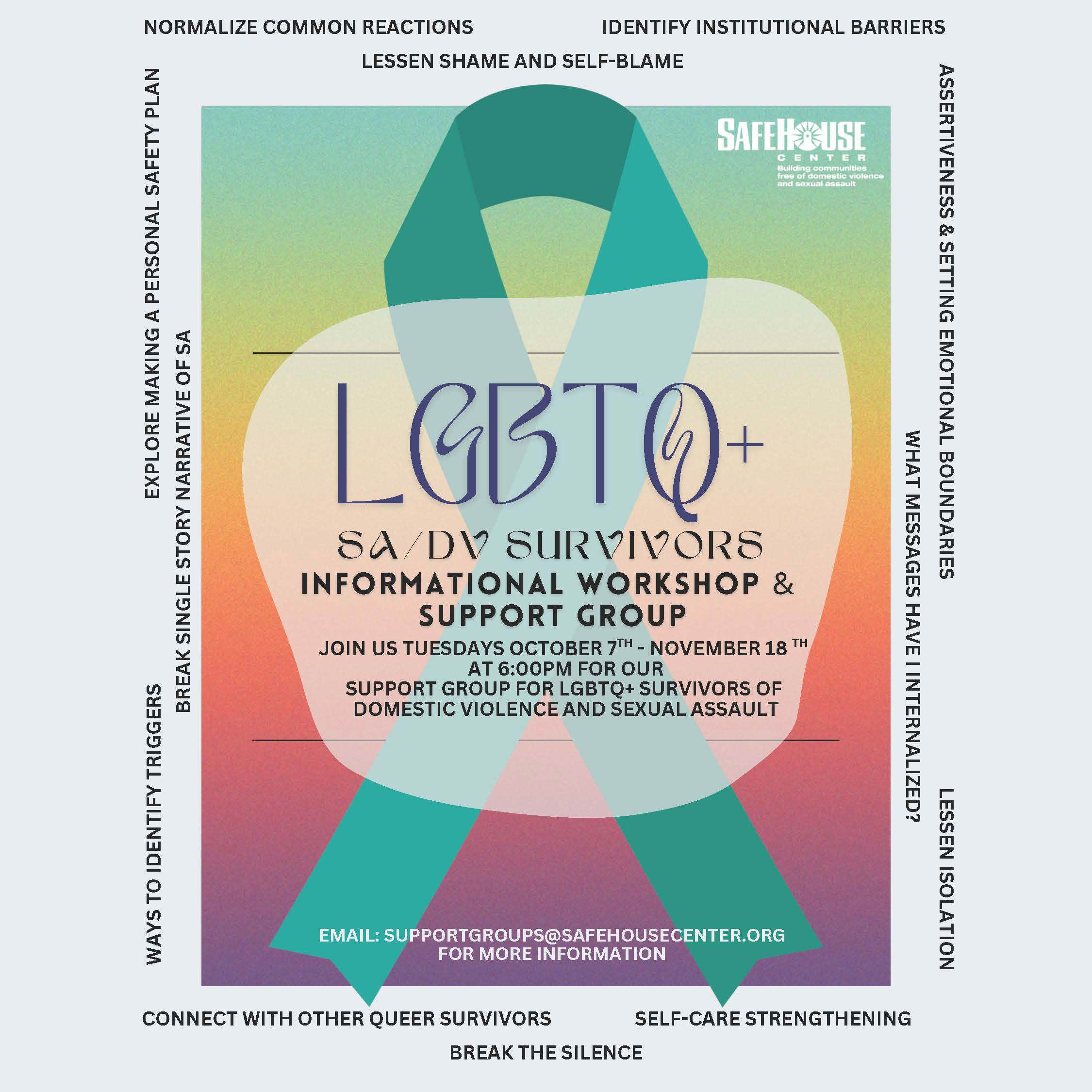 SafeHouse LGBTQ+ SA/DV Support Group starts on Thursday, October 3!